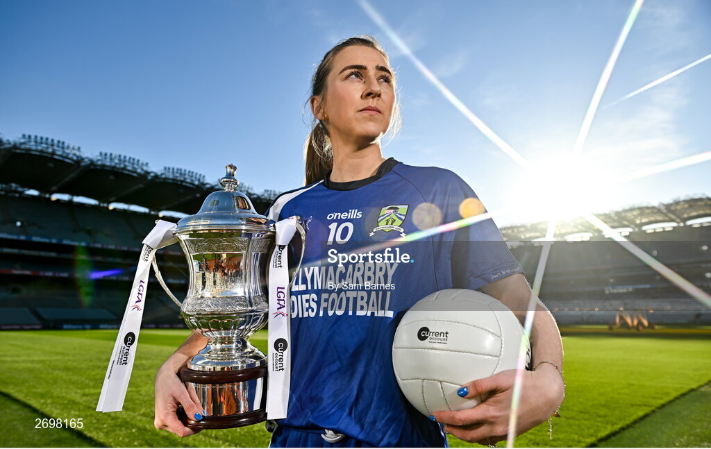 13 December 2023; (EDITORS NOTE: A special effects camera filter was used for this image.) In attendance at a photocall ahead of the currentaccount.ie All-Ireland Junior, Intermediate and Ladies Senior Club Football Championship Finals next weekend is Aileen Wall of Ballymacarbry, Waterford, with the Dolores Tyrrell Memorial Cup. The Intermediate and Senior Finals will be played at Croke Park on Saturday, December 16, with the Junior Final to be played at Parnell Park, Dublin, on Sunday December 17. Photo by Sam Barnes/Sportsfile
