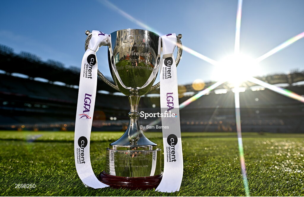 13 December 2023; (EDITORS NOTE: A special effects camera filter was used for this image.) The Junior Cup pictured ahead of the currentaccount.ie All-Ireland Junior, Intermediate and Ladies Senior Club Football Championship Finals next weekend. The Intermediate and Senior Finals will be played at Croke Park on Saturday, December 16, with the Junior Final to be played at Parnell Park, Dublin, on Sunday December 17. Photo by Sam Barnes/Sportsfile