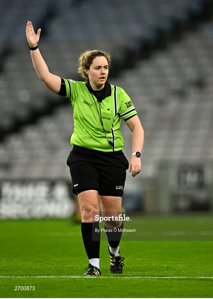 16 December 2023; Referee Siobhán Coyle during the Currentaccount.ie LGFA All-Ireland Intermediate Club Championship final match between Ballinamore-Seán O'Heslin's of Leitrim and Glanmire of Cork at Croke Park in Dublin. Photo by Piaras Ó Mídheach/Sportsfile
