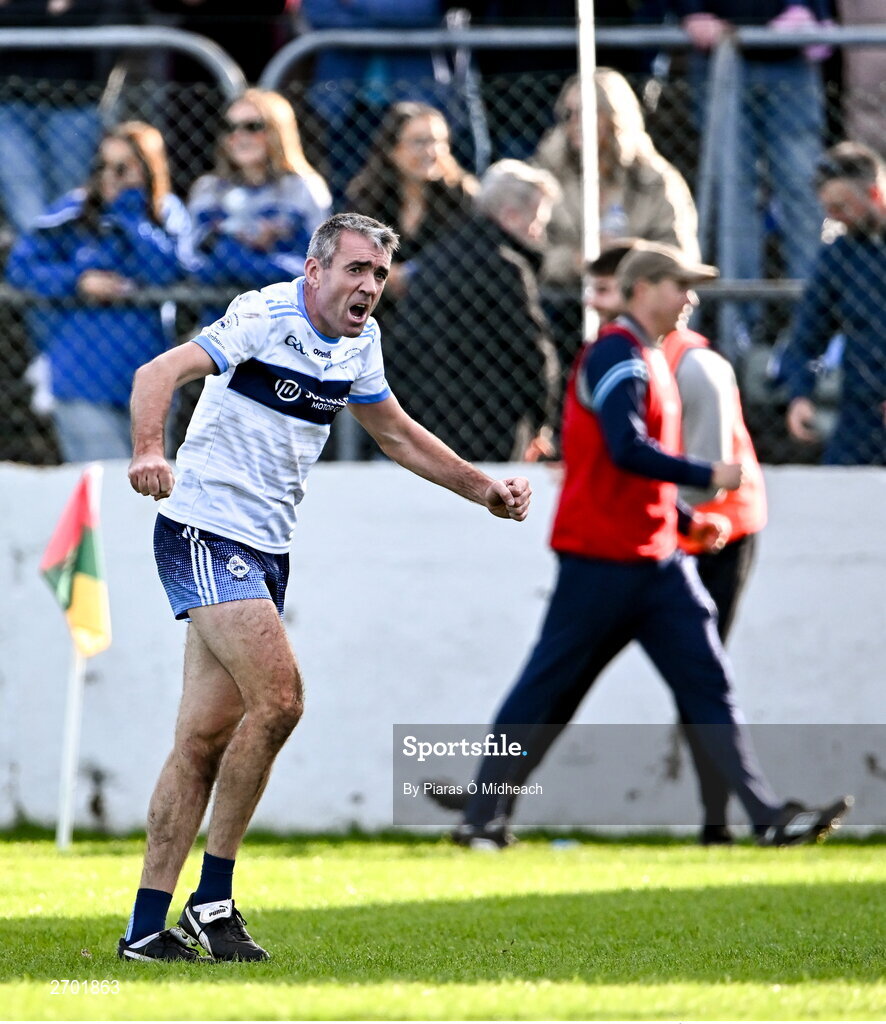 22 October 2023; Johnny Doyle of Allenwood celebrates during the Kildare County Intermediate Club Football Championship final between Castledermot and Allenwood at Netwatch Cullen Park in Carlow. Photo by Piaras Ó Mídheach/Sportsfile