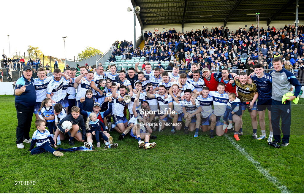 22 October 2023; Allenwood celebrate after their side's victory in the Kildare County Intermediate Club Football Championship final between Castledermot and Allenwood at Netwatch Cullen Park in Carlow. Photo by Piaras Ó Mídheach/Sportsfile