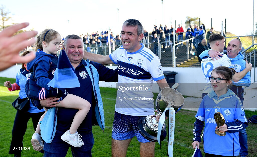 22 October 2023; Johnny Doyle of Allenwood celebrates with supporters after his side's victory in the Kildare County Intermediate Club Football Championship final between Castledermot and Allenwood at Netwatch Cullen Park in Carlow. Photo by Piaras Ó Mídheach/Sportsfile