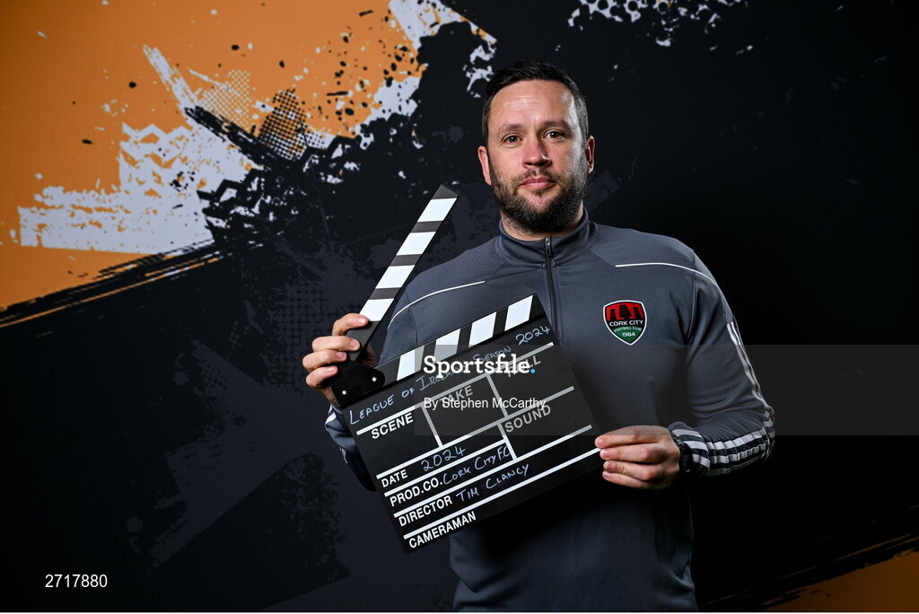29 January 2024; Head coach Tim Clancy poses for a portrait during a Cork City FC squad portraits session at Bishopstown Stadium in Cork. Photo by Stephen McCarthy/Sportsfile