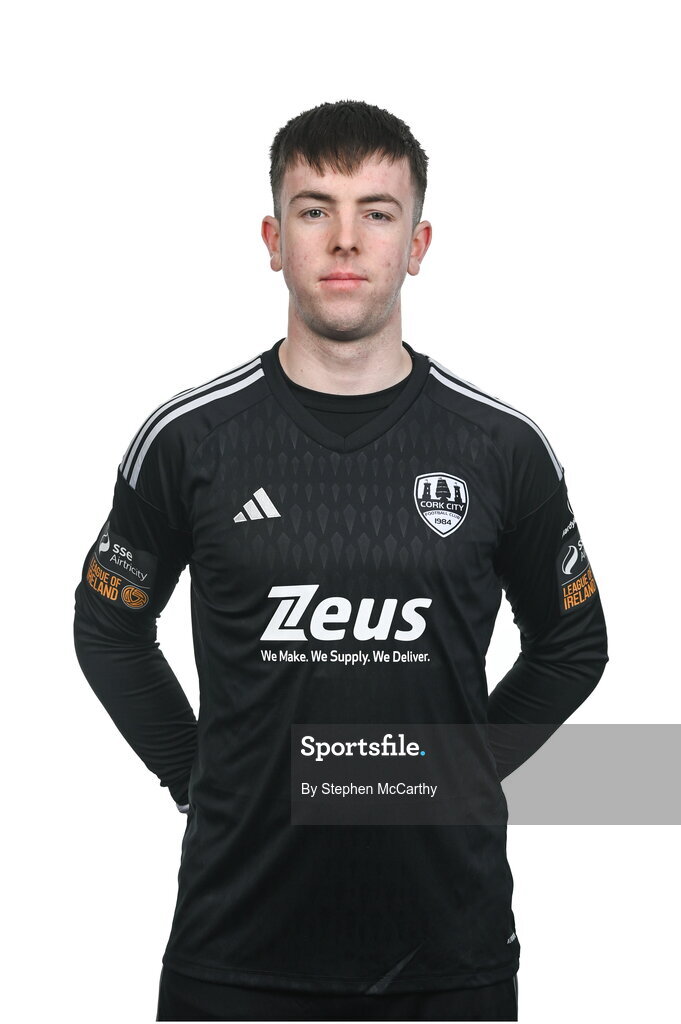 29 January 2024; Goalkeeper Daniel Moynihan poses for a portrait during a Cork City FC squad portraits session at Bishopstown Stadium in Cork. Photo by Stephen McCarthy/Sportsfile