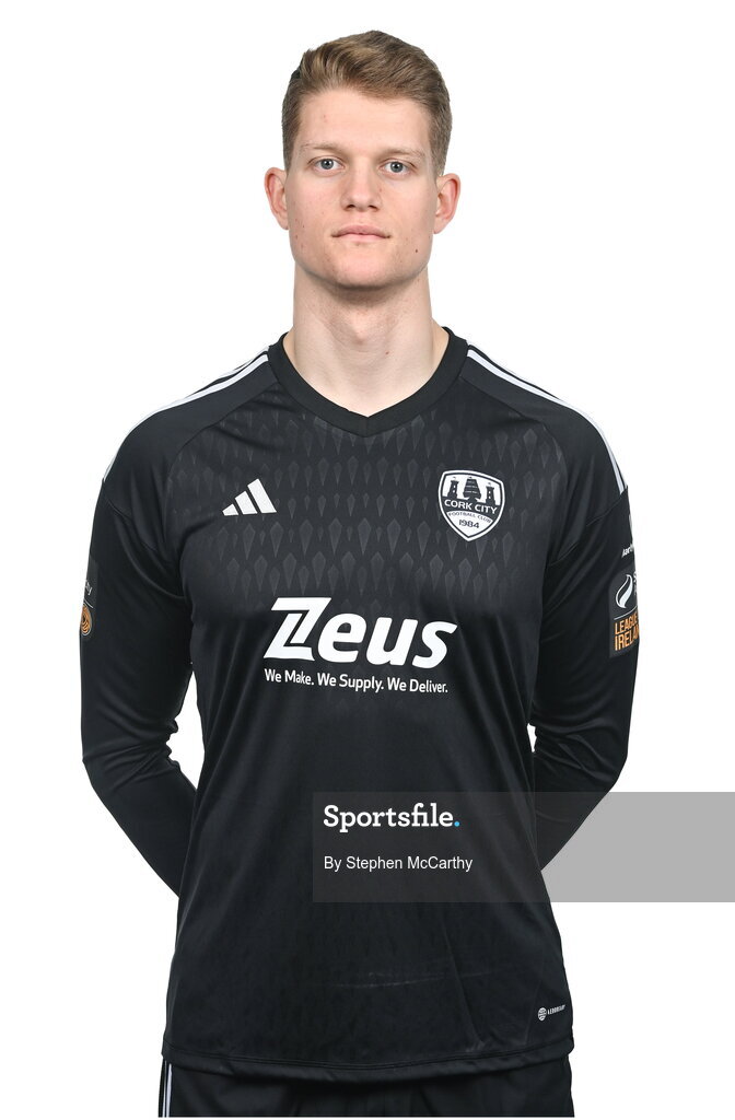 29 January 2024; Goalkeeper Aidan Dowling poses for a portrait during a Cork City FC squad portraits session at Bishopstown Stadium in Cork. Photo by Stephen McCarthy/Sportsfile