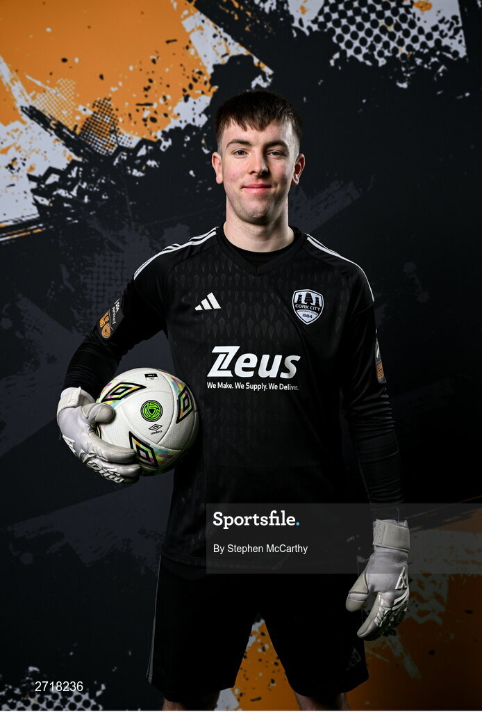 29 January 2024; Goalkeeper Daniel Moynihan poses for a portrait during a Cork City FC squad portraits session at Bishopstown Stadium in Cork. Photo by Stephen McCarthy/Sportsfile