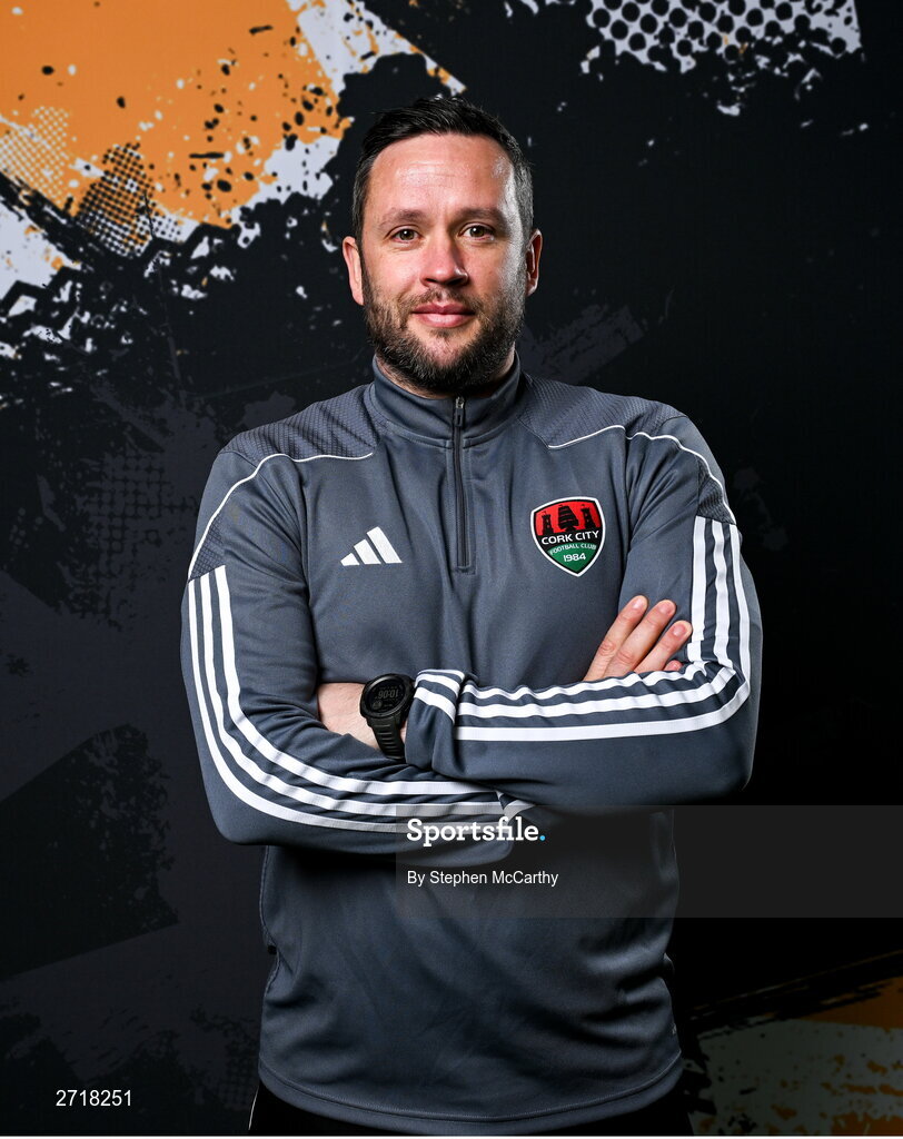 29 January 2024; Head coach Tim Clancy poses for a portrait during a Cork City FC squad portraits session at Bishopstown Stadium in Cork. Photo by Stephen McCarthy/Sportsfile