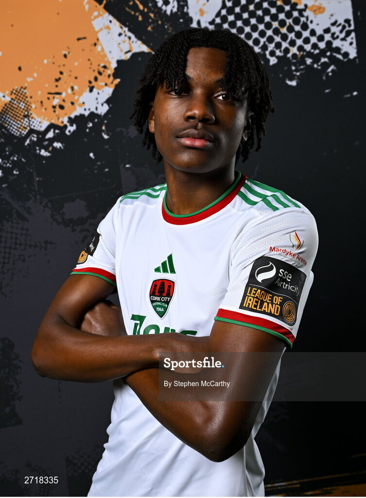 29 January 2024; Jaden Umeh poses for a portrait during a Cork City FC squad portraits session at Bishopstown Stadium in Cork. Photo by Stephen McCarthy/Sportsfile