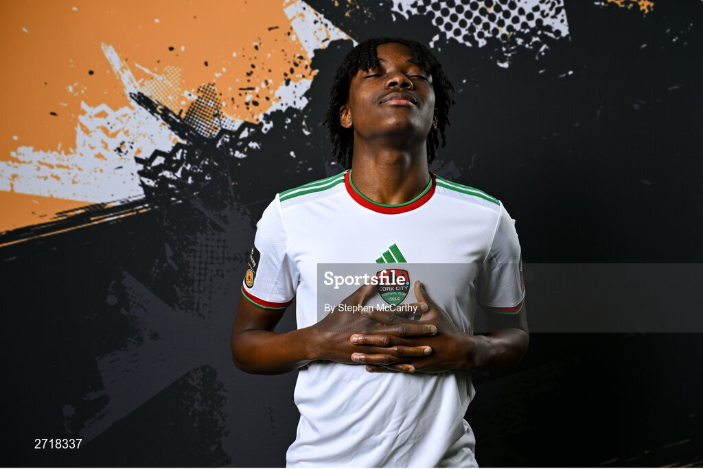 29 January 2024; Jaden Umeh poses for a portrait during a Cork City FC squad portraits session at Bishopstown Stadium in Cork. Photo by Stephen McCarthy/Sportsfile
