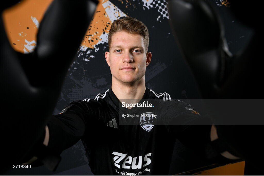 29 January 2024; Goalkeeper Aidan Dowling poses for a portrait during a Cork City FC squad portraits session at Bishopstown Stadium in Cork. Photo by Stephen McCarthy/Sportsfile