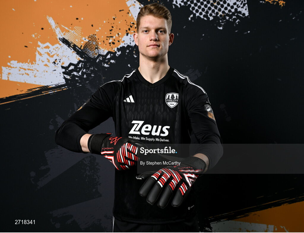 29 January 2024; Goalkeeper Aidan Dowling poses for a portrait during a Cork City FC squad portraits session at Bishopstown Stadium in Cork. Photo by Stephen McCarthy/Sportsfile