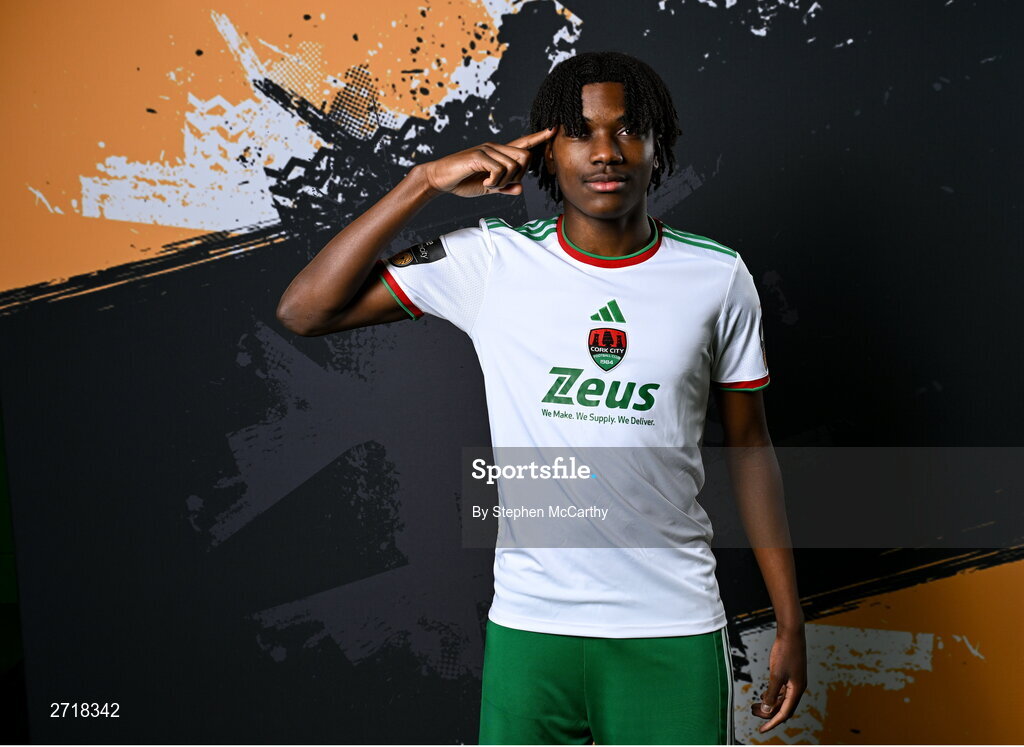 29 January 2024; Jaden Umeh poses for a portrait during a Cork City FC squad portraits session at Bishopstown Stadium in Cork. Photo by Stephen McCarthy/Sportsfile