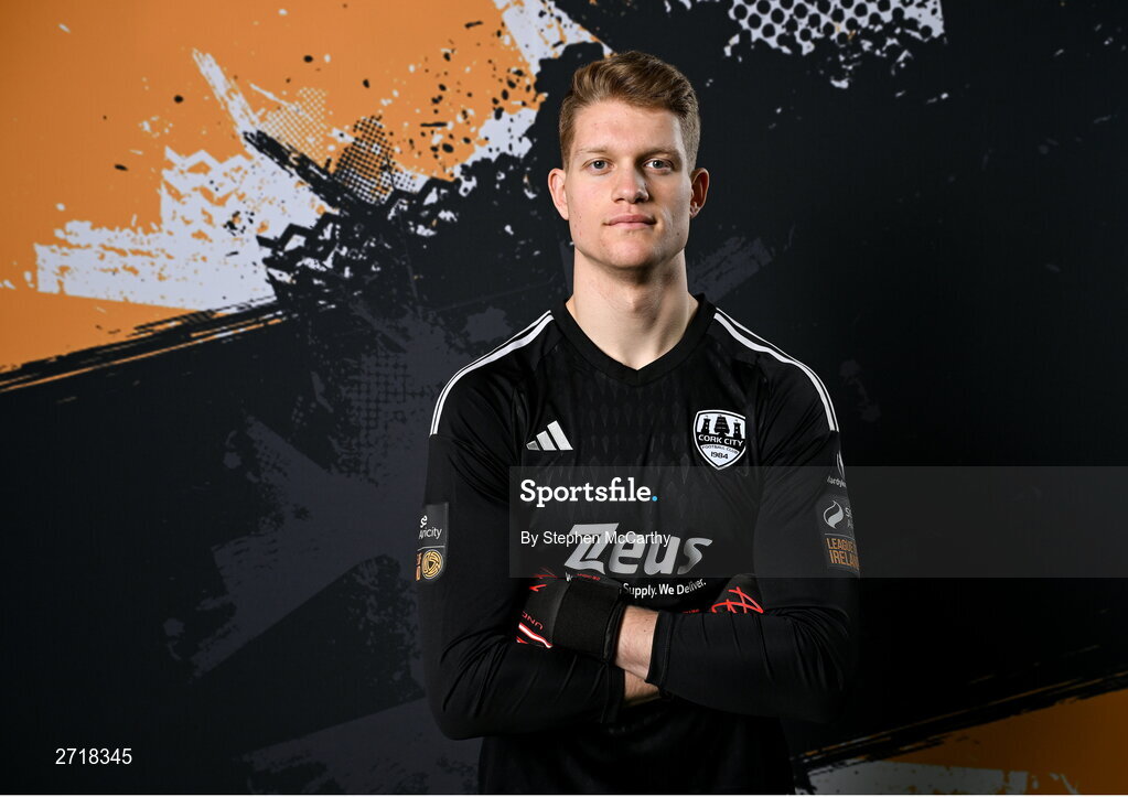 29 January 2024; Goalkeeper Aidan Dowling poses for a portrait during a Cork City FC squad portraits session at Bishopstown Stadium in Cork. Photo by Stephen McCarthy/Sportsfile