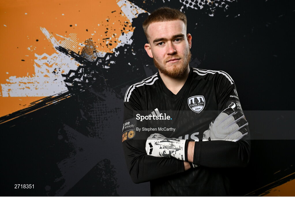 29 January 2024; Goalkeeper Brad Wade poses for a portrait during a Cork City FC squad portraits session at Bishopstown Stadium in Cork. Photo by Stephen McCarthy/Sportsfile