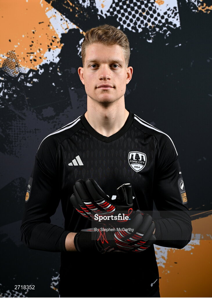 29 January 2024; Goalkeeper Aidan Dowling poses for a portrait during a Cork City FC squad portraits session at Bishopstown Stadium in Cork. Photo by Stephen McCarthy/Sportsfile