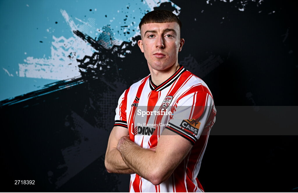 29 January 2024; Sam Todd during a Derry City FC squad portrait session at The Ryan McBride Brandywell Stadium in Derry. Photo by Ramsey Cardy/Sportsfile