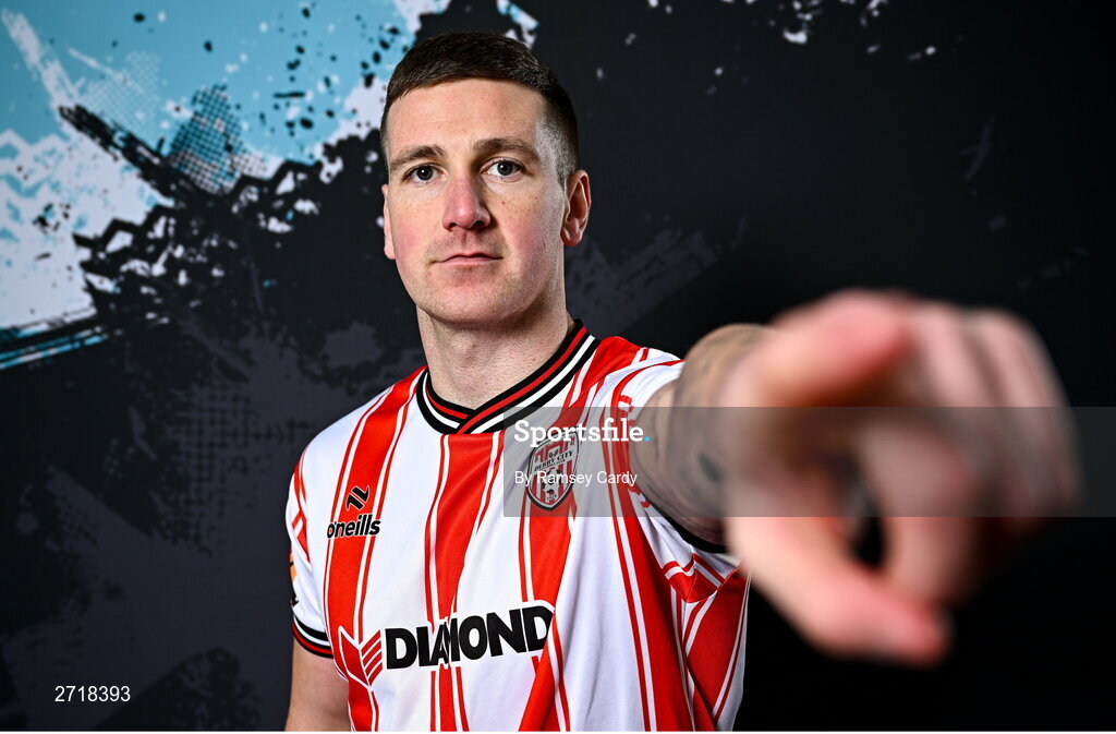 29 January 2024; Patrick McEleney during a Derry City FC squad portrait session at The Ryan McBride Brandywell Stadium in Derry. Photo by Ramsey Cardy/Sportsfile