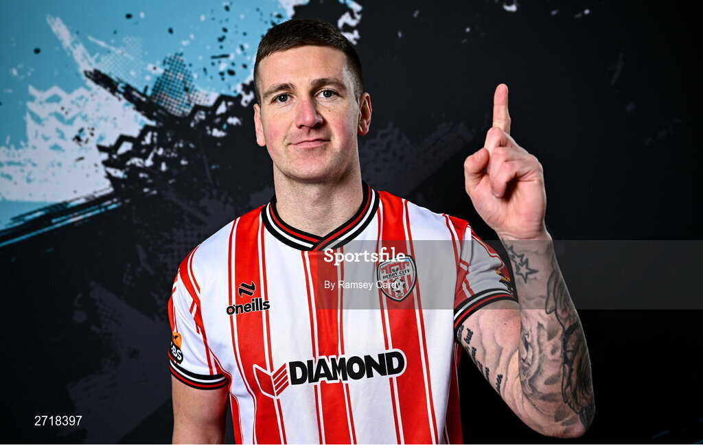 29 January 2024; Patrick McEleney during a Derry City FC squad portrait session at The Ryan McBride Brandywell Stadium in Derry. Photo by Ramsey Cardy/Sportsfile