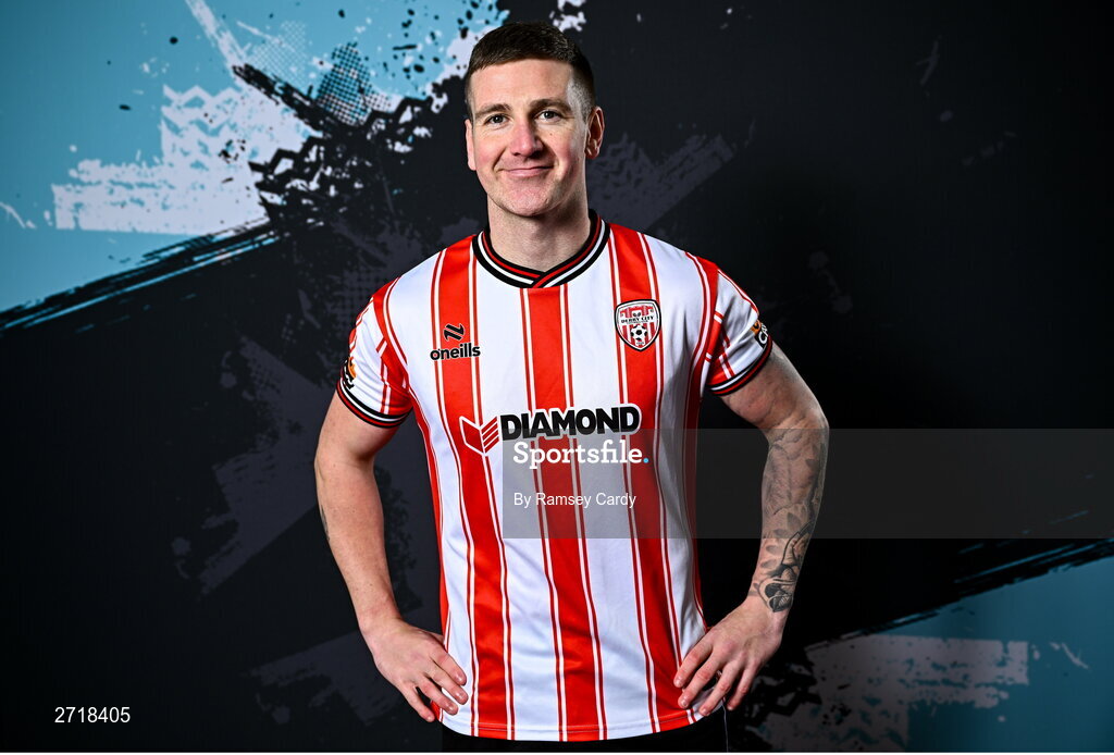 29 January 2024; Patrick McEleney during a Derry City FC squad portrait session at The Ryan McBride Brandywell Stadium in Derry. Photo by Ramsey Cardy/Sportsfile