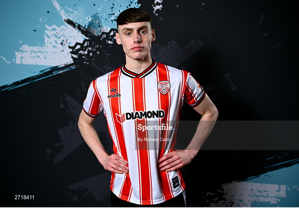 29 January 2024; Conor Barr during a Derry City FC squad portrait session at The Ryan McBride Brandywell Stadium in Derry. Photo by Ramsey Cardy/Sportsfile