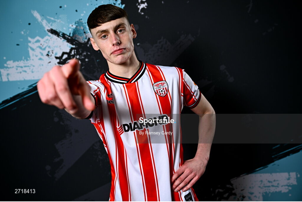 29 January 2024; Conor Barr during a Derry City FC squad portrait session at The Ryan McBride Brandywell Stadium in Derry. Photo by Ramsey Cardy/Sportsfile