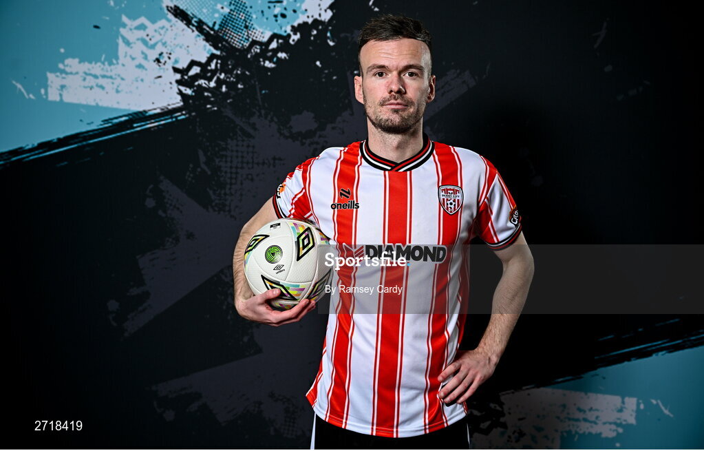 29 January 2024; Cameron Dummigan during a Derry City FC squad portrait session at The Ryan McBride Brandywell Stadium in Derry. Photo by Ramsey Cardy/Sportsfile