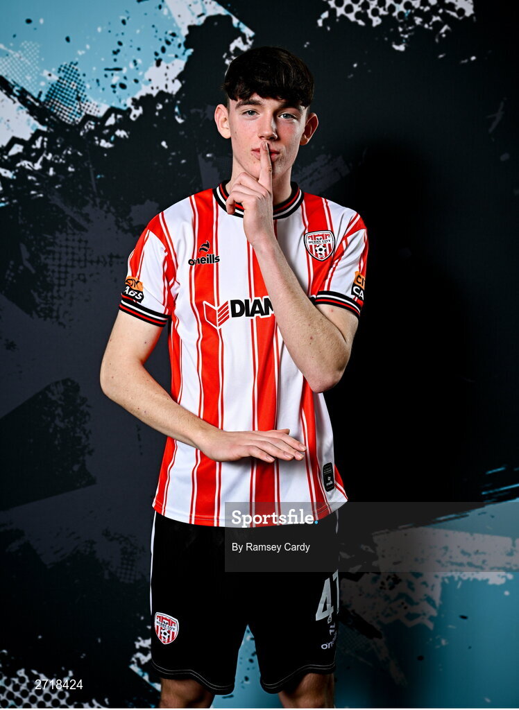 29 January 2024; Luke O’Donnell during a Derry City FC squad portrait session at The Ryan McBride Brandywell Stadium in Derry. Photo by Ramsey Cardy/Sportsfile