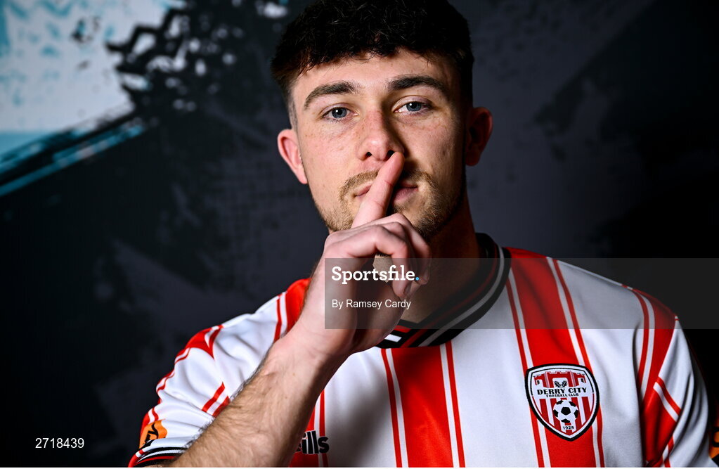 29 January 2024; Adam O'Reilly during a Derry City FC squad portrait session at The Ryan McBride Brandywell Stadium in Derry. Photo by Ramsey Cardy/Sportsfile