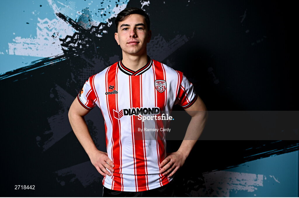 29 January 2024; Daithí McCallion during a Derry City FC squad portrait session at The Ryan McBride Brandywell Stadium in Derry. Photo by Ramsey Cardy/Sportsfile