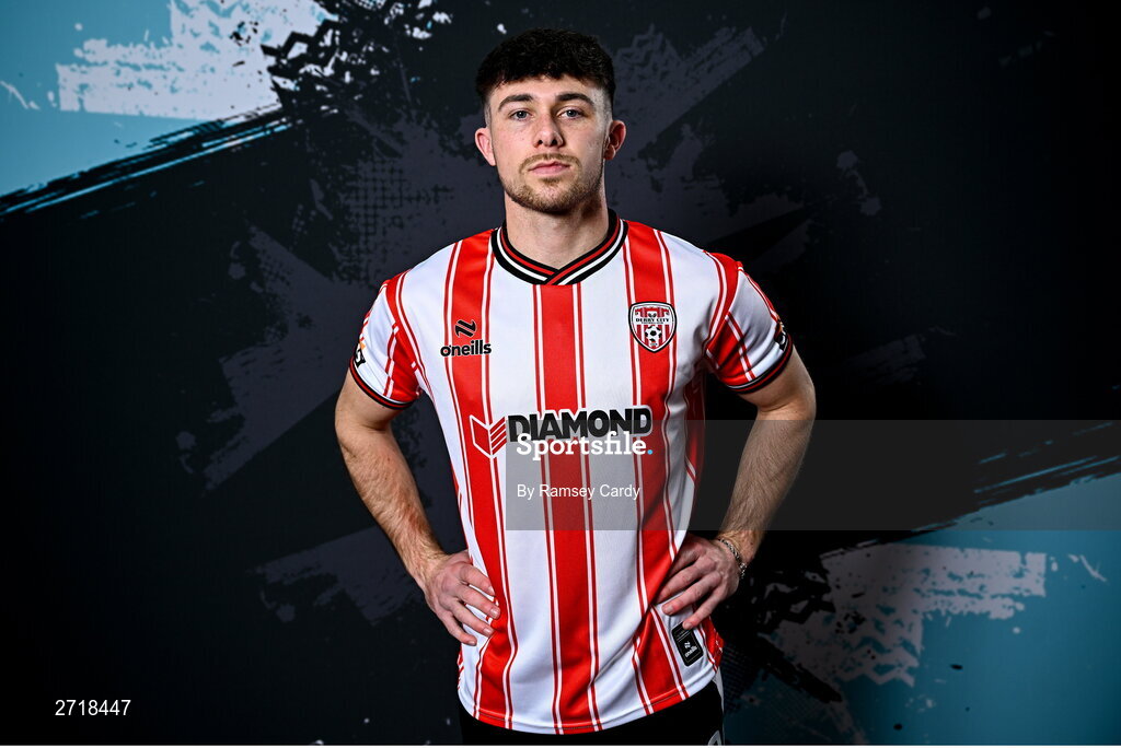 29 January 2024; Adam O'Reilly during a Derry City FC squad portrait session at The Ryan McBride Brandywell Stadium in Derry. Photo by Ramsey Cardy/Sportsfile