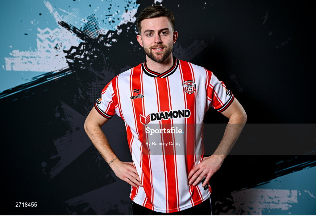 29 January 2024; Will Patching during a Derry City FC squad portrait session at The Ryan McBride Brandywell Stadium in Derry. Photo by Ramsey Cardy/Sportsfile