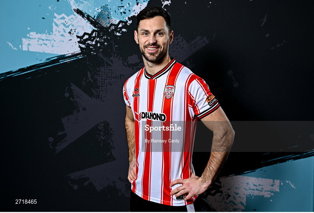 29 January 2024; Patrick Hoban during a Derry City FC squad portrait session at The Ryan McBride Brandywell Stadium in Derry. Photo by Ramsey Cardy/Sportsfile