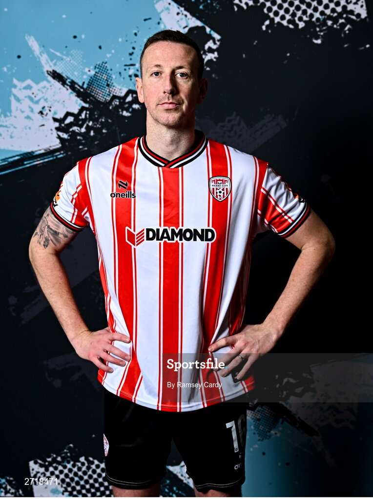 29 January 2024; Shane McEleney during a Derry City FC squad portrait session at The Ryan McBride Brandywell Stadium in Derry. Photo by Ramsey Cardy/Sportsfile