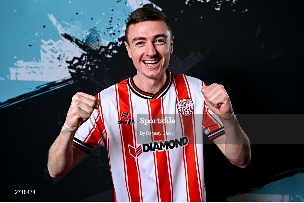 29 January 2024; Daniel Kelly during a Derry City FC squad portrait session at The Ryan McBride Brandywell Stadium in Derry. Photo by Ramsey Cardy/Sportsfile