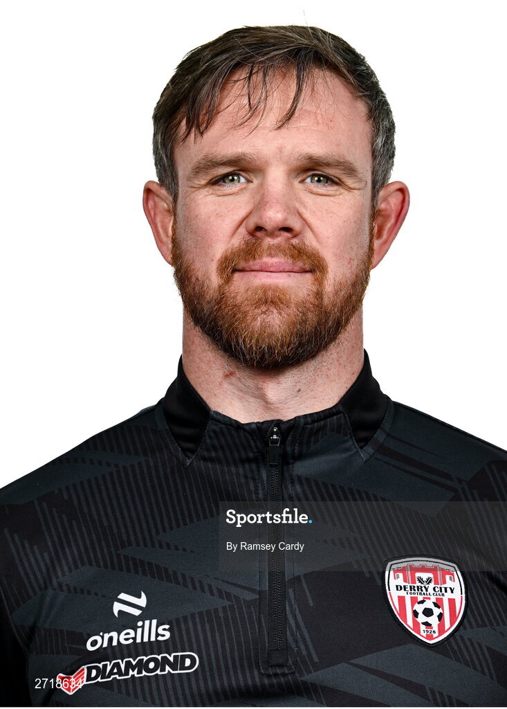 29 January 2024; Strength & Conditioning Coach Kevin McCreadie during a Derry City FC squad portrait session at The Ryan McBride Brandywell Stadium in Derry. Photo by Ramsey Cardy/Sportsfile