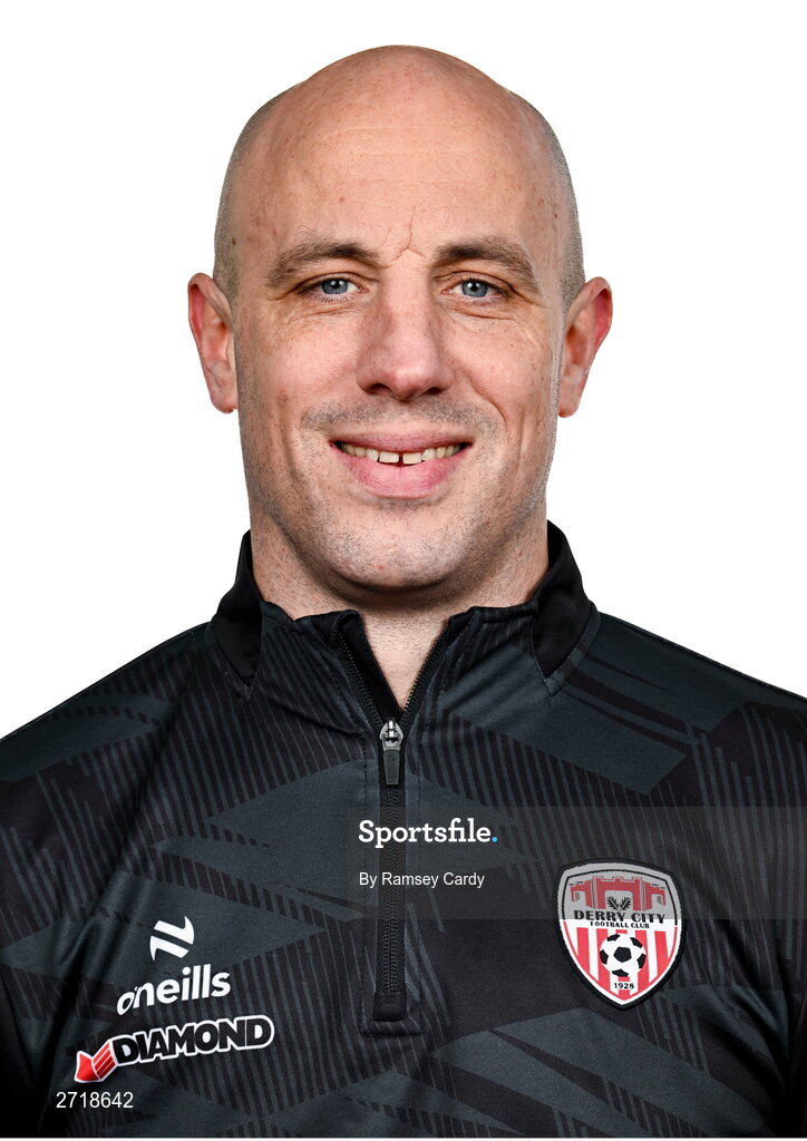 29 January 2024; Professional Development Coach Mark McChrystal during a Derry City FC squad portrait session at The Ryan McBride Brandywell Stadium in Derry. Photo by Ramsey Cardy/Sportsfile