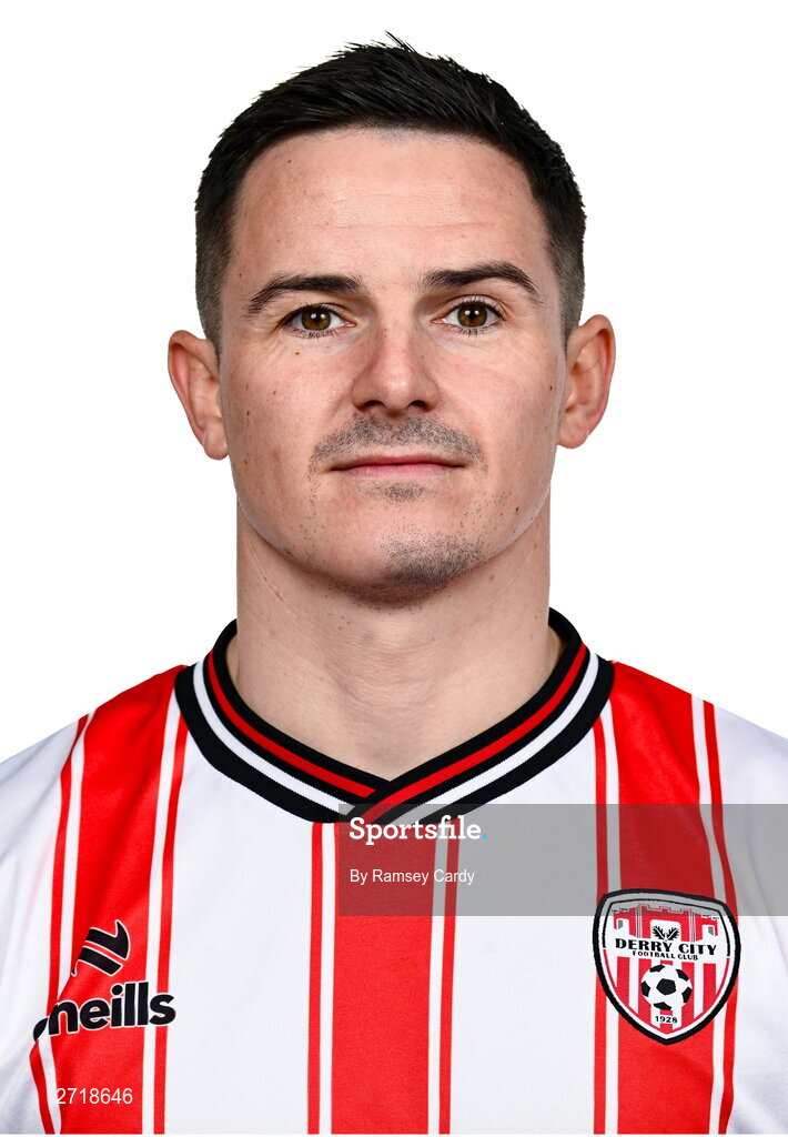 29 January 2024; Ciaran Coll during a Derry City FC squad portrait session at The Ryan McBride Brandywell Stadium in Derry. Photo by Ramsey Cardy/Sportsfile