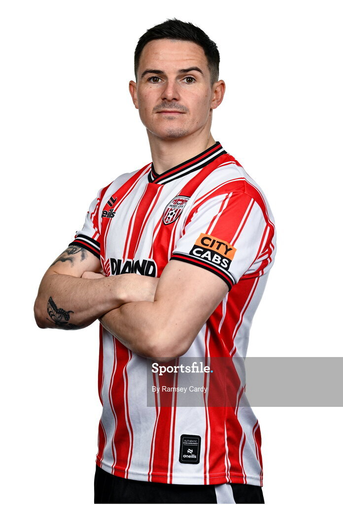 29 January 2024; Ciaran Coll during a Derry City FC squad portrait session at The Ryan McBride Brandywell Stadium in Derry. Photo by Ramsey Cardy/Sportsfile