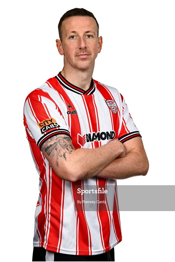 29 January 2024; Shane McEleney during a Derry City FC squad portrait session at The Ryan McBride Brandywell Stadium in Derry. Photo by Ramsey Cardy/Sportsfile