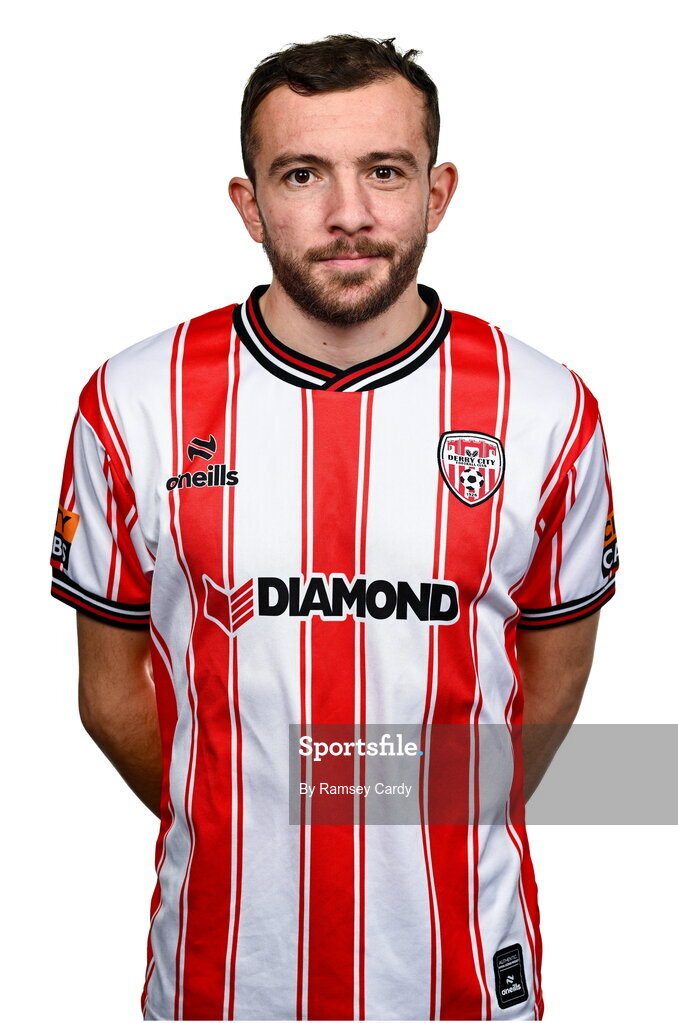 29 January 2024; Paul McMullan during a Derry City FC squad portrait session at The Ryan McBride Brandywell Stadium in Derry. Photo by Ramsey Cardy/Sportsfile