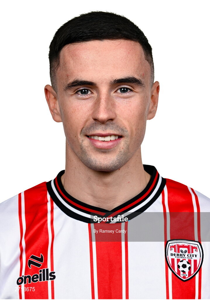 29 January 2024; Jordan McEneff during a Derry City FC squad portrait session at The Ryan McBride Brandywell Stadium in Derry. Photo by Ramsey Cardy/Sportsfile