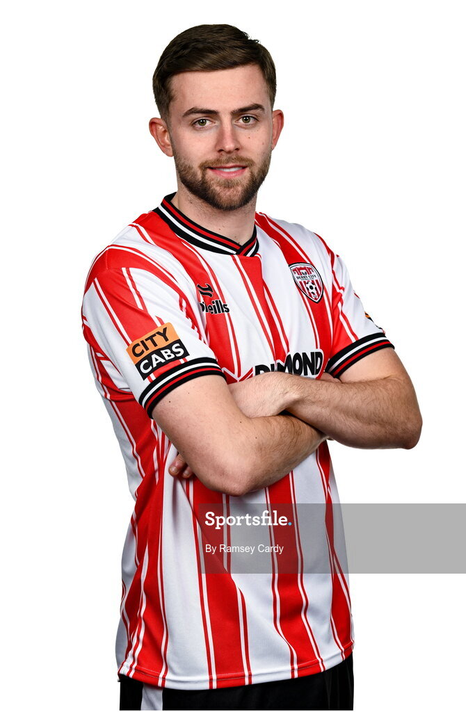 29 January 2024; Will Patching during a Derry City FC squad portrait session at The Ryan McBride Brandywell Stadium in Derry. Photo by Ramsey Cardy/Sportsfile