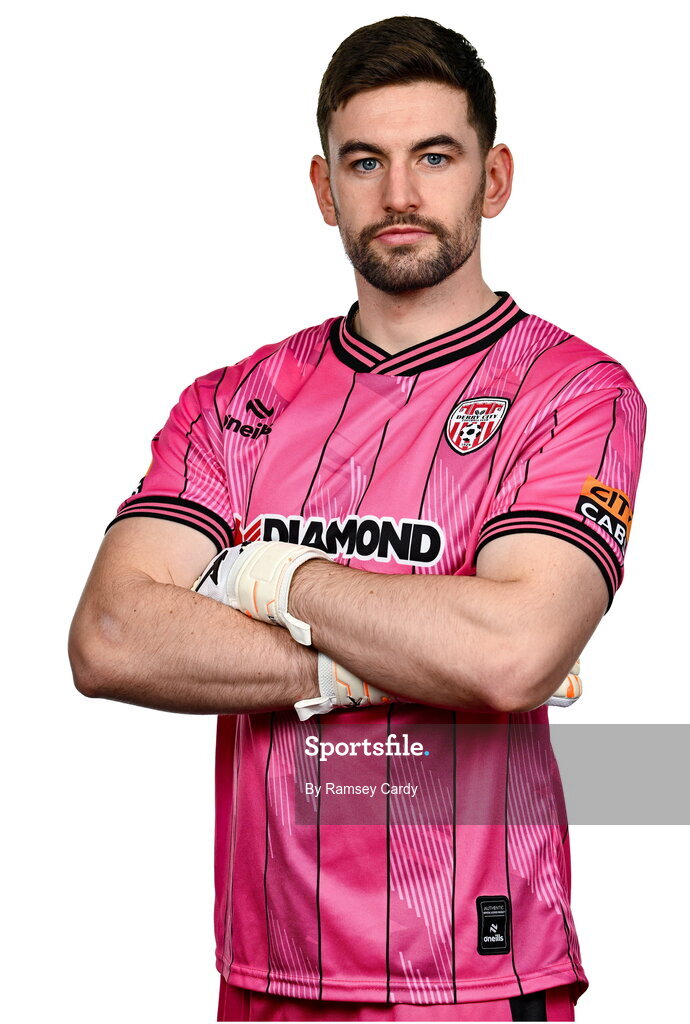 29 January 2024; Tadhg Ryan during a Derry City FC squad portrait session at The Ryan McBride Brandywell Stadium in Derry. Photo by Ramsey Cardy/Sportsfile