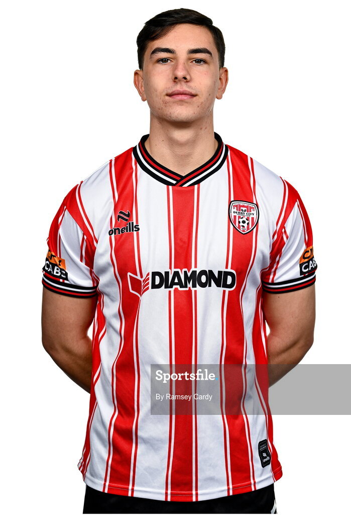 29 January 2024; Daithí McCallion during a Derry City FC squad portrait session at The Ryan McBride Brandywell Stadium in Derry. Photo by Ramsey Cardy/Sportsfile
