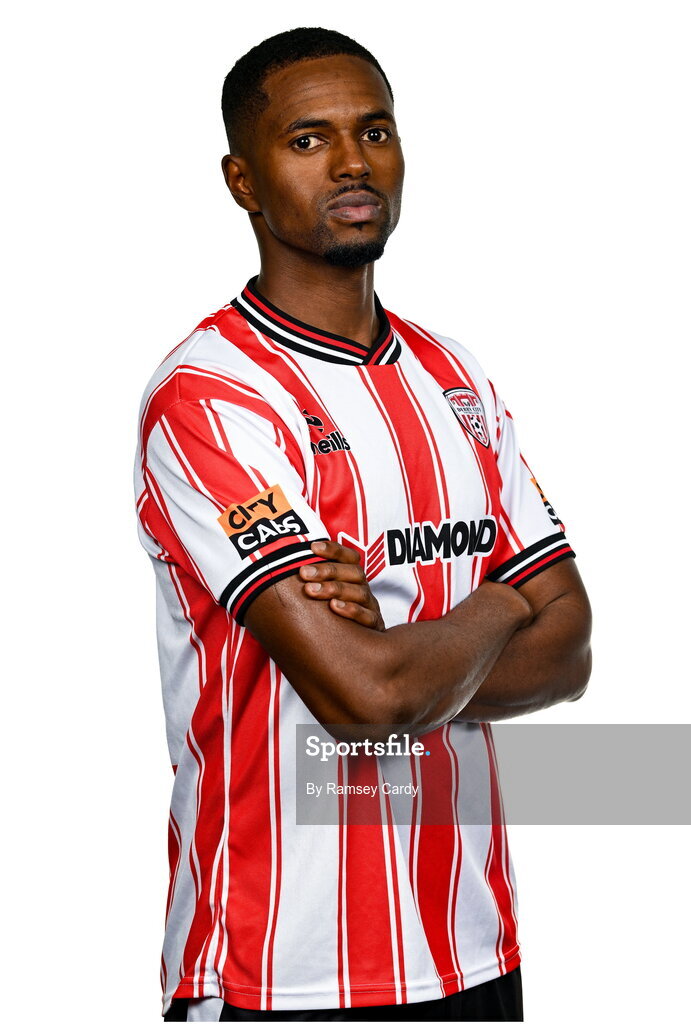 29 January 2024; Sadou Diallo during a Derry City FC squad portrait session at The Ryan McBride Brandywell Stadium in Derry. Photo by Ramsey Cardy/Sportsfile