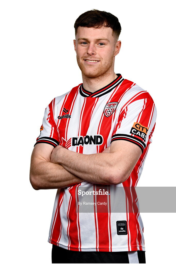 29 January 2024; Cameron McJannet during a Derry City FC squad portrait session at The Ryan McBride Brandywell Stadium in Derry. Photo by Ramsey Cardy/Sportsfile