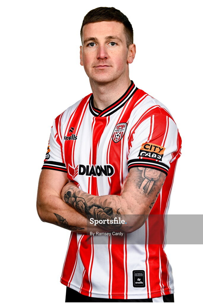 29 January 2024; Patrick McEleney during a Derry City FC squad portrait session at The Ryan McBride Brandywell Stadium in Derry. Photo by Ramsey Cardy/Sportsfile