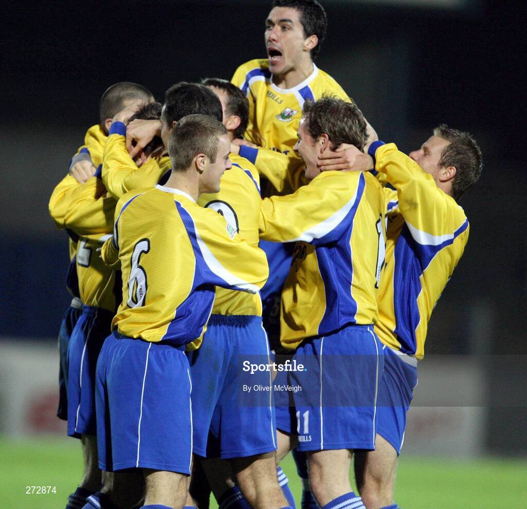 7 November 2007; Darren King, Newry City, is surrounded by team-mates after scoring his sides first goal. CIS Insurance Cup semi-final, Linfield v Newry City, Mourneview Park, Lurgan, Co. Armagh. Picture credit; Oliver McVeigh / SPORTSFILE