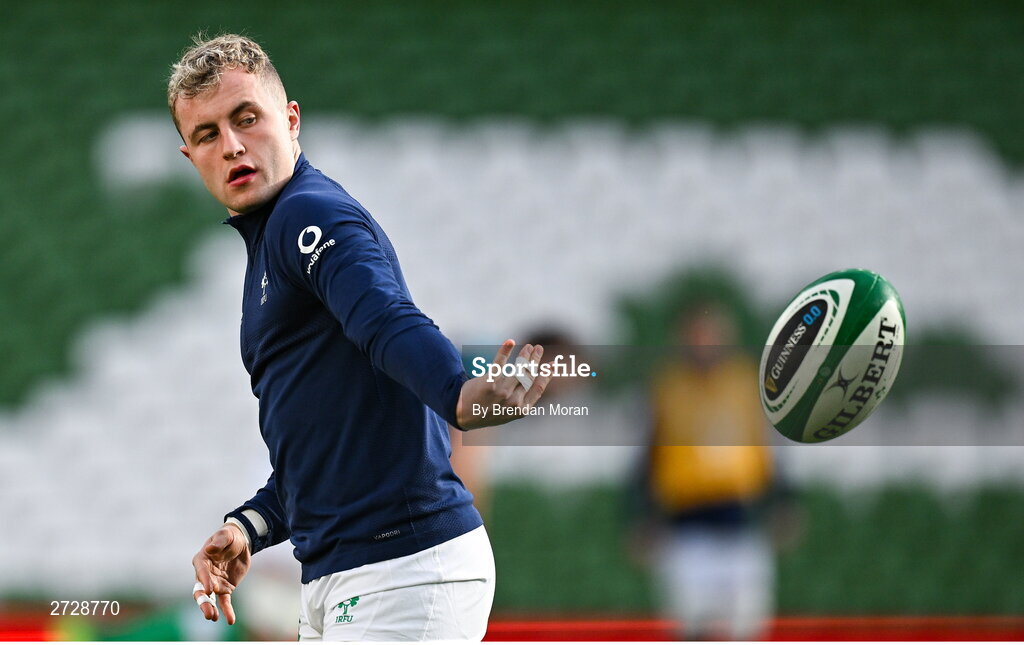 10 February 2024; Craig Casey during an Ireland Rugby captain's run at the Aviva Stadium in Dublin. Photo by Brendan Moran/Sportsfile