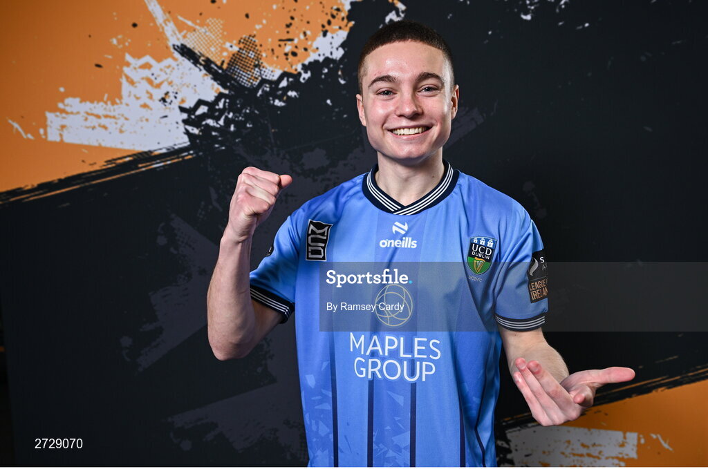 9 February 2024; Sam Norval poses for a portrait during a UCD FC squad portraits session at UCD Bowl in Dublin. Photo by Ramsey Cardy/Sportsfile